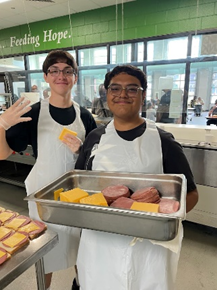 One week later (on September 3rd), the Guardian Angels were able to volunteer at Haven for Hope to serve the homeless! There were 19 young men from Central Catholic (and one amazing young lady – Mr. Bendele's daughter, Terra) who helped. Mr. Tim Hansen (Social Studies faculty) also joined the group. We ended up making 3,840 sandwiches and served lunch to over 400 individuals. One essential item to point out – we were serving vegetables that had been locally grown at the San Juan Community Farm (where we had volunteered just a week before)!